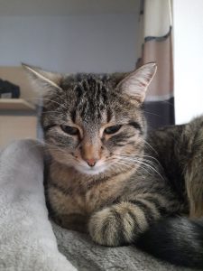 Katze Josie, weiblich, kastriert, gechipt, 4,5 Jahre – vermisst seit dem 28.3. 2026 – Ludwigshöhe, St. Mang – Freigänger – Sie ist zu Fremden eher scheu – Insgesamt recht neugierig, könnte auch irgendwo eingesperrt sein – Am linken Ohr hat sie einen kleinen Riss – Getigert, die Zeichnung von vorn betrachtet ist recht symmetrisch