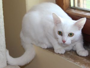 Ich bin der Branco, ein wunderschöner, komplett weißer Kater. Ich bin kastriert und ungefähr 1 1/2 Jahre alt. Bei fremden Menschen bin ich zurückhaltend. Wenn ich die Leute kenne, lasse ich mich anfassen und streicheln. Früher lebte ich auf einem Hof mit vielen Katzen, deshalb möchte ich unbedingt wieder Freigang. Vielleicht nimmt sich jemand ein Herz und gibt einer ängstlicheren Katze ein schönes Zuhause. Ich wäre sehr dankbar.
