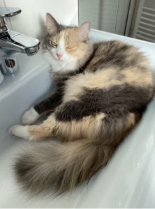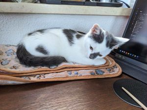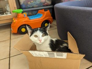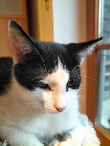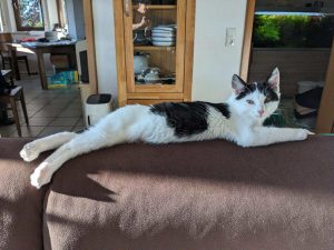 Ich bin die Jessy, ich bin ca. Anfang/Mitte Mai geboren, genau weiß das niemand, weil meine Mutter eine scheue Hofkatze ist. Glücklicherweise bin ich aber zutraulich und lasse mich anfassen und streicheln. . In meinem künftigen Zuhause hätte ich gerne Freigang. Leider habe ich beim Fotografieren immer die Augen zu gemacht. 😉