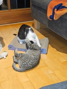 Emil und Elias sind zwei aufgeweckte Katzen, die alles im Haus erkunden. Sie spielen wunderbar miteinander und lieben ihr Katzenspielzeug. Emil ist zwischenzeitlich zutraulich und genießt seine Streicheleinheiten. Elias ist noch etwas zurückhaltender, kann aber Streicheleinheiten zwischendurch auch genießen. Ihre Geschichte eine traurige bis sie gesichert wurden, dafür machen sie schon sehr große Fortschritte und möchten den Menschen ihr Vertrauen schenken. Die zwei Kleinen knapp 4 Monate alten Katzenkinder, sind bereits gechipt, geimpft und entwurmt und auf der Suche nach einem schönen Zuhause, in dem sie geliebt und umsorgt werden und später ihren Freigang genießen können ❤️ Wer sie kennenlernen möchte gerne unter der Telefonnummer ☎️ 0175-2430594 melden