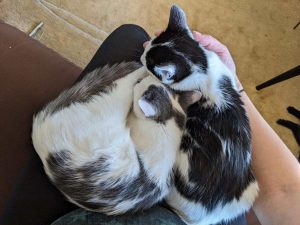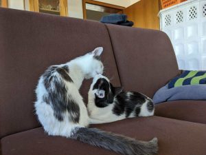 Wir sind Aimee, 1 1/2 Jahre, kastriert und Sammy, 6 Jahre alt und kastriert. Leider haben wir unser Zuhause verloren. Unser Herrchen ist unerwartet gestorben und unser Frauchen musste das Haus verkaufen und hat leider keine Wohnung gefunden, in die wir mit durften. Deshalb sind wir nun auf der Suche nach einem gemeinsamen Zuhause mit Freigang. Wir hängen sehr aneinander. Wir sind sehr lieb, verschmust, menschenbezogen und anhänglich.