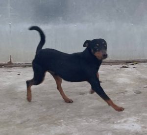 Wo sind die Pinscherfreunde? POKU sitzt momentan unschuldig hinter Gittern im Tierheim der ARCA de Torredelcampo. Er ist sehr verträglich mit den Zwingerkumpels, egal ob Rüden oder Hündinnen, POKU kommt mit allen gut aus. Mit uns Menschen ist er auch lieb, er mag sehr gerne gestreichelt werden u wenn man aufhört stupft er einen bis man weitermacht. Im Auslauf rennt er sehr gerne im weiten Bogen, er beschnuppert jede Ecke u liest die Neuigkeiten, die im Tierheimalltag ja eher selten sind, ganz genau. POKU wurde in einem Industriegebiet gefunden – dort irrte er umher. Wahrscheinlich hatte man ihn einfach ausgesetzt. Zum Glück nahm ihn ein netter Mann mit nach Hause. Dieser vertraute ihn nach ein paar Tagen der ARCA an. Geboren ist POKU im Frühjahr 2023, er misst 45 cm u wiegt knapp 10 kg. Kastriert, geimpft u gechipt kann der Mischlingsrüde Spanien verlassen, wenn liebevolle Menschen ihm ein Zuhause bieten.